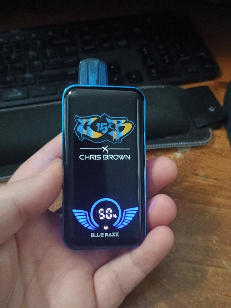 Chris Brown CB15K Disposable Vape Kit is a disposable vape with a high puff count, satisfying around 15000 puffs with 15ml high-quality vape juice and a rechargeable battery. Distinctive from other disposable kits, Chris Brown CB15K frees you from the trouble of find a Type-C Cable. The newest technology allows you to recharge CB15K wirelessly. The reinforced mesh coils distribute heat to each drop of e-juice evenly, preventing burnt tastes and other unpleasant vaping experiences. Chris Brown CB15K is also equipped with a color digital display. It has a unique animation of wings when you vape. It is fun and relaxed to enjoy a Chris Brown CB15K.