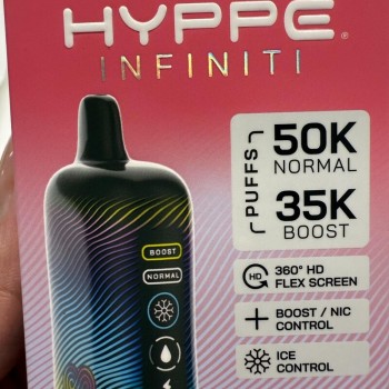 Hyppe Infiniti 50K features a bright and cool display that not only shows basic data but also offers you a fully immersive 360-degree vape data experience. Hyppe Infiniti offers two modes: the normal mode, which allows you to enjoy 50,000 puffs, and the Boost mode, which enables you to enjoy 35,000 puffs, providing you with more vapor and a richer taste. In addition, it offers a rich variety of e-liquid flavors to cater to different groups of people. The Hyppe Infiniti 50K also features an ice control that can adjust the cooling effect, adding another layer of flavor.