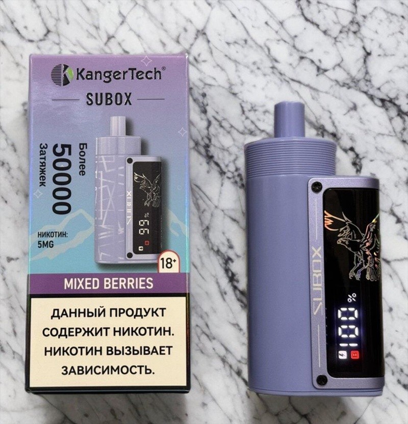 Kanger SUBOX 50000 offers up to 50000 puffs in Normal mode, powered by an internal rechargeable 900mAh battery. Featuring a generous 40ml tank, this Kanger vape combines dual flavors in one device for a versatile experience. Its advanced LC & HB coil design promotes "low consumption" and "high burst" performance, with a digital display showing battery, e-juice level, and mode indicators. The device offers two vaping modes, Normal and Burst, with easy switching by double-clicking the charging port. Adjust the bottom airflow wheel to suit both MTL and DL preferences. Designed for both functionality and flavor, this kanger vape disposable includes a nicotine strength of 0.5% (5mg/ml).