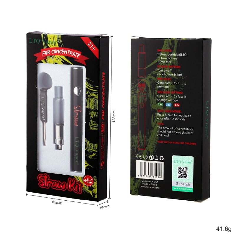LTQ Vapor Straw Vaporizer, equipped with a 280mAh battery and ceramic coil for wax, offers customizable vaping with three voltage settings (3.4V, 3.7V, 4.2V) and an adjustable air hole. It features a preheat function, LED voltage indicators, and essential safety protections including time-out and short-circuit. For more information, explore vapes on sale for competitive prices on similar devices.