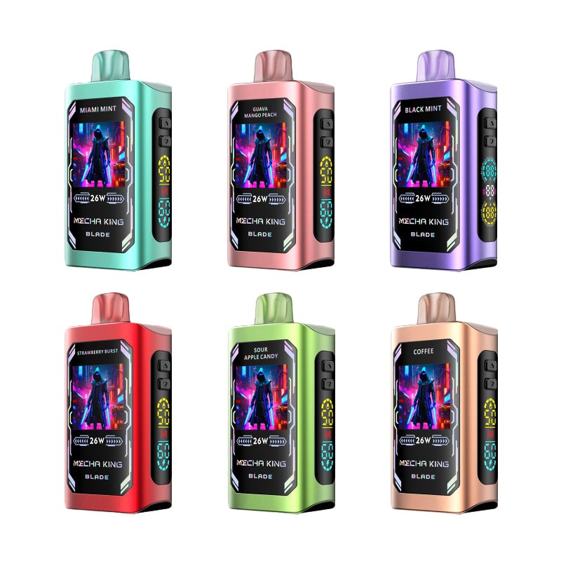 Mecha King Blade 25K boasts 25000 puffs, a 920mAh battery, and 22ml of pre-filled vape juice, ensuring approximately 25000 puffs of uninterrupted vaping pleasure. It stands out with dual LED display screens that show essential vaping statistics and enhance user interaction with an interactive UI featuring six customizable wallpapers. Whether you're a novice or an experienced vaper, this disposable vape offers the flexibility, power, and convenience needed to tailor your vaping experience to perfection.