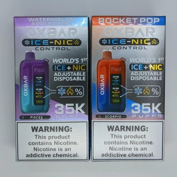 Pod Juice X OXBAR 35K Disposable Vape is produced and designed by Pod Juice and OXBAR, offering pod juice x oxbar 35k flavors and is the first disposable vape with nic control and ice control. For pod juice x oxbar 35k where to buy, it features 5% nicotine content, ensuring 35000 puffs, and boasts a 900mAh battery. With refillable pods available, the Pod Juice X OXBAR 35K combines unique zodiac sign and two vaping modes. Discover the best flavors and enjoy the seamless experience of the Pod Juice X OXBAR 35K today.