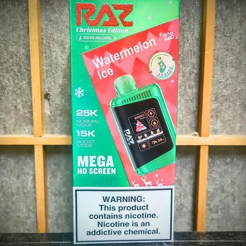 RAZ LTX 25K Christmas Edition is here to sleigh your holiday vaping game! Featuring a rechargeable 800mAh battery, it offers an impressive 25,000 puffs in Normal Mode or 15,000 in Boost Mode—perfect for endless festive vibes. Pre-filled with 16ml of e-juice at a bold 5% nicotine strength, it ensures rich flavors all season long. Its LED display showcases a cheerful Santa and Christmas tree, complete with Dark and Light modes for your mood. Equipped with an advanced coil system and temperature control, it delivers smooth, consistent hits. Whether you're jingling all the way in Normal Mode or turning up in Boost Mode, the RAZ LTX 25K makes this Christmas one to remember.