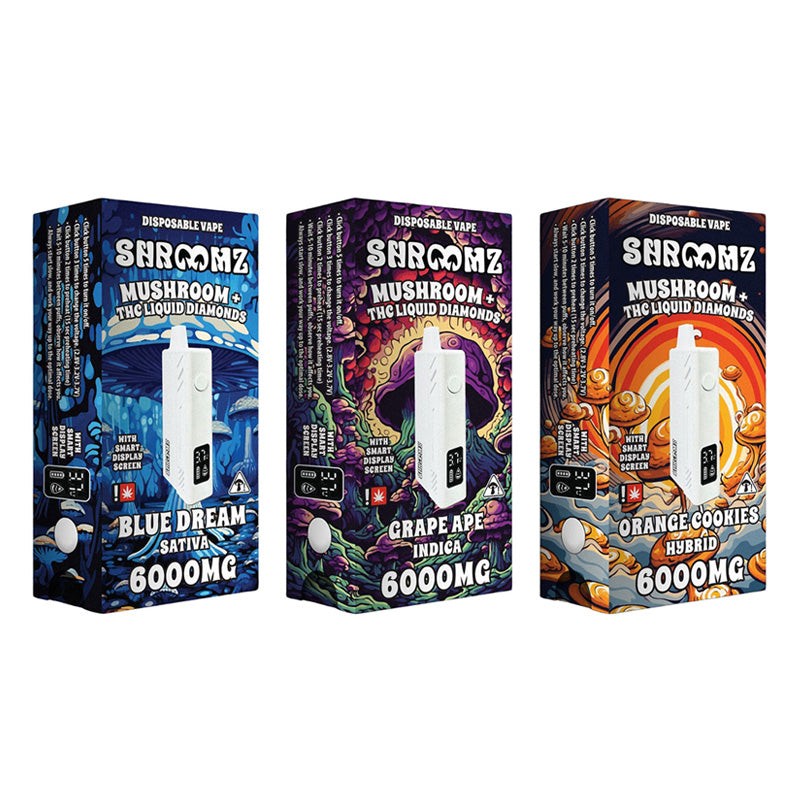 Shroomz THC Liquid Diamonds Mushroom is equipped with 6G (6000mg), ensuring a long-lasting vaping experience before your disposal. Its integrated rechargeable battery enhances the convenience, ensuring that users can enjoy the entire vape without worrying about power running. Equipped with a mesh coil heating element, known for its efficiency and high performance. The inclusion of its smart display screen adds a high-tech touch to the device, allowing for easily monitoring various information such as battery life and consumption.