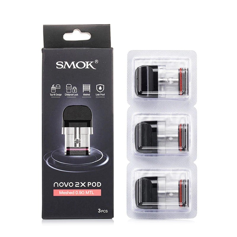 SMOK Novo 2X Pod Cartridge is equipped with a 2ml e-liquid capacity, which is designed for Novo/Novo 2X/Novo 2/Novo 3/Novo 2S Kit. Besides, the pods feature a top system with a rubber plug, making refilling quick and mess-free for vapers to enjoy. The Novo 2X pods typically come with a built-in coil with a resistance of 0.9ohm, 0.8ohm or 0.6ohm available online. What's more, They have a strong magnetic connection to ensure they stay securely attached to the device. Each pack contains three replacement pods.