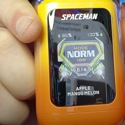 Spaceman Nebula 25K Plus Disposable Vape boasts pre-filled 18ml e-juice, a rechargeable internal 1000mAh battery, and approximately 25000 puffs, making it a top choice for serious vapers looking for longevity and flavor in one package. It stands out with its innovative features tailored for the discerning vaper. Equipped with three distinct vaping modes—Soft at 14W, Norm at 18W, and Boost at 25W—it allows users to customize their vaping experience to their preference. Adding to its allure is the 1.44-inch smart screen, which not only provides vital vaping data but also entertains with multiple animations, enhancing the overall user experience. This device perfectly blends functionality with fun, making it a must-have for vape enthusiasts.