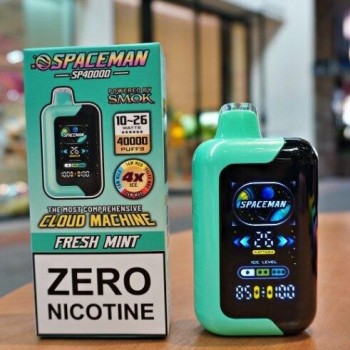 Spaceman SP40000 Zero Nicotine Disposable Vape redefines vaping with a clean, nicotine-free experience. Developed by SMOK, this zero nicotine vape delivers up to 40,000 puffs, powered by a 1000mAh rechargeable battery. A 20ml pre-filled e-liquid capacity ensures long-lasting use, while four adjustable power settings—10W, 16W, 20W, and 26W—let you control every inhale. The large digital screen provides real-time updates on ice levels and power output, and the dynamic rainbow gradient light adds a futuristic touch. With three customizable ice levels, the Spaceman SP40000 Nicotine Free Disposable Vape caters to any preference. Experience smooth, flavorful vapor with absolute control—without the nicotine. Enjoy this disposable vape with double tanks now!