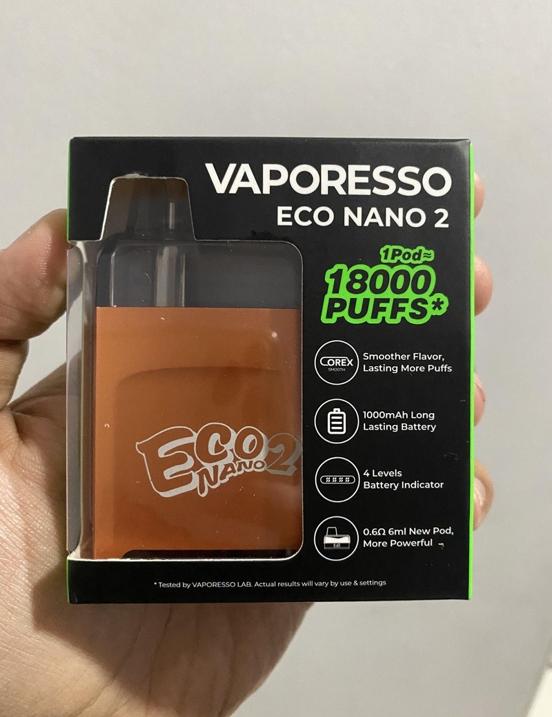 Vaporesso Eco Nano 2 Kit features a sleek design, measuring 44.7 x 18.0 x 77.0mm, and includes an integrated replaceable rechargeable 1000mAh battery. With a 6ml capacity for vape juice, one pod can deliver around 18000 puffs, ideal for those looking for a trusted online vape shop. It is equipped with a 4-level LED indicator and utilizes Vaporesso’s COREX Smooth Technology along with the AXON Chip to ensure consistent flavor, compatible with the Vaporesso Eco Nano Series Pod Cartridge.