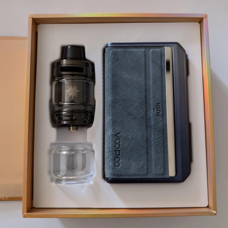 VOOPOO Drag 5 is powered by external single 18650 batteries (not included) and offers up to 177W output, bundled with a 5ml UFORCE-X tank. The Drag 5 offers multiple vaping modes, including RBA, Eco, and Smart, as well as four temperature control modes supporting Ni, Ti, SS316, and SS430. The 0.96-inch color TFT screen gives a easier navigation. The UFORCE-X Tank included in the kit is compatible with the PnP coil series, performing well for a sub-ohm vaping experience. Boasting a sturdy build with materials such as leather, and zinc alloy, it gives it a premium and durable feel.