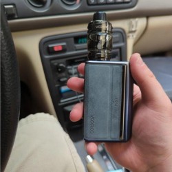 VOOPOO Drag 5 Box Mod can be compatible with a UFORCE-X tank, featuring an external single 18650 configuration, and a maximum output of 177W. Paired with a 0.96-inch TFT display screen, it supports multiple modes and has clearer battery icons. Constructed from zinc alloy & leather, Drag 5 gives it a premium appearance. The overall build quality is robust, with a solid and hefty feel. It features a C-frame battery cover with magnetic closure, making it easy to access the dual 18650 batteries.